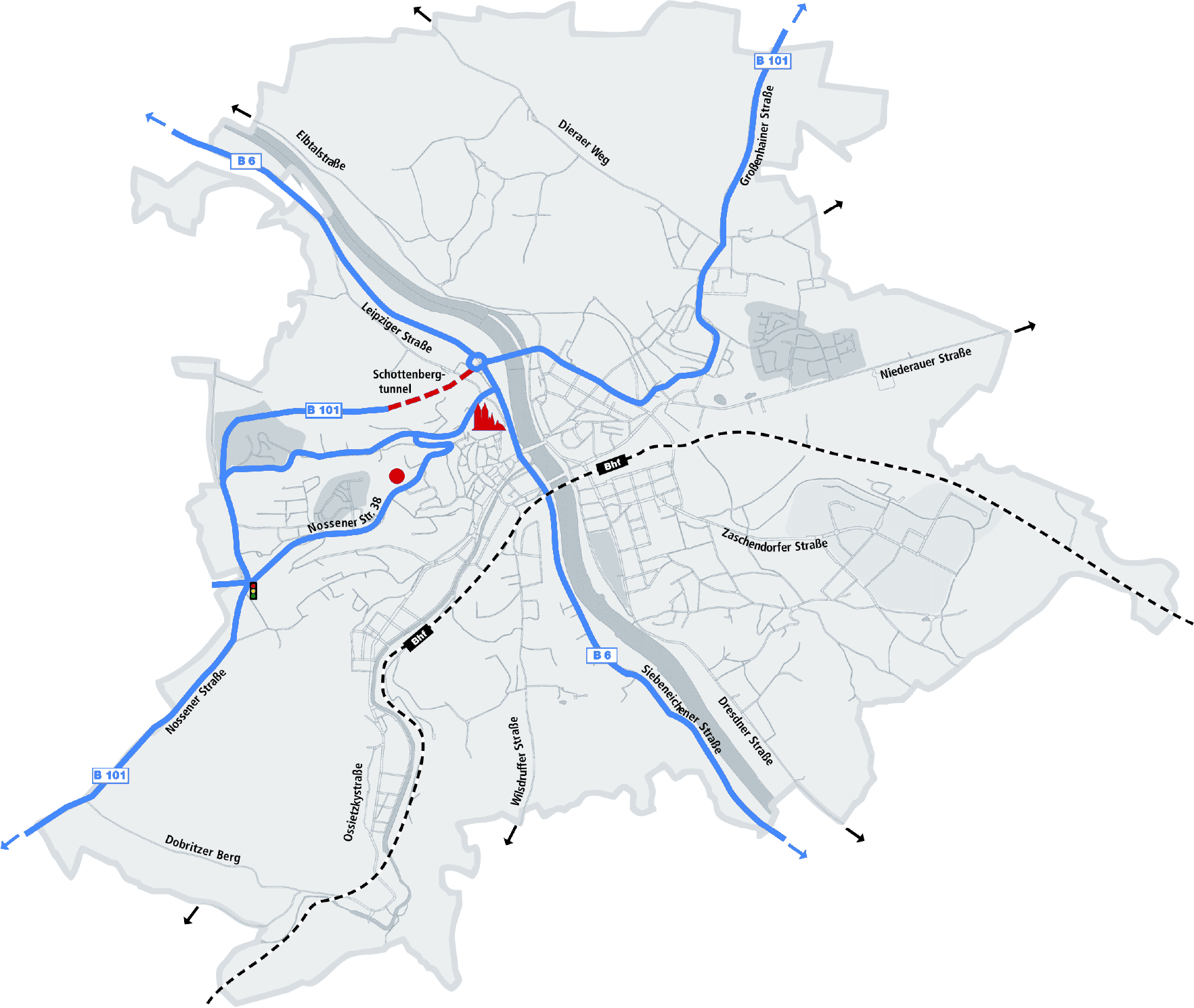 - B 6 bis Ortseingang Meißen