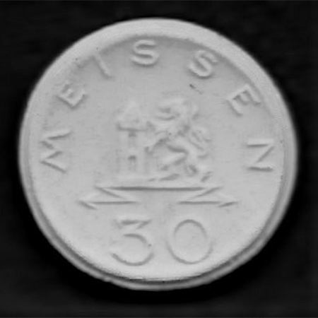 Strassenbahngeld der Straßenbahn Meißen (weißes Biskuitporzellan, runde Form)
